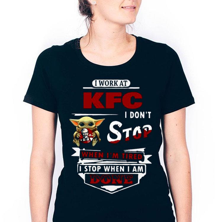 Baby Yoda Hug I Work At KFC Kentucky Fried Chicken I Don’t Stop When I’m Tired I Stop When I Am Done Shirt, Hoodie, Sweater, Longsleeve T-Shirt For Men and Women